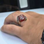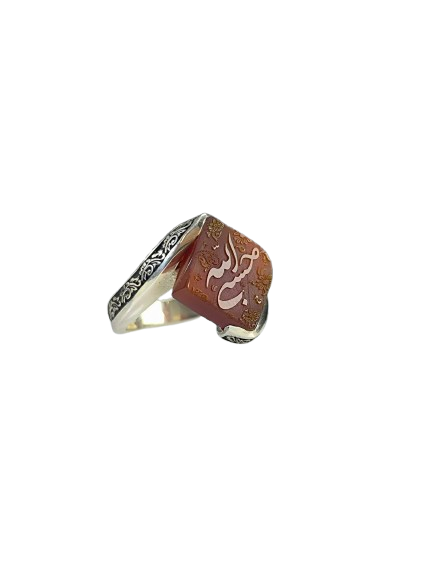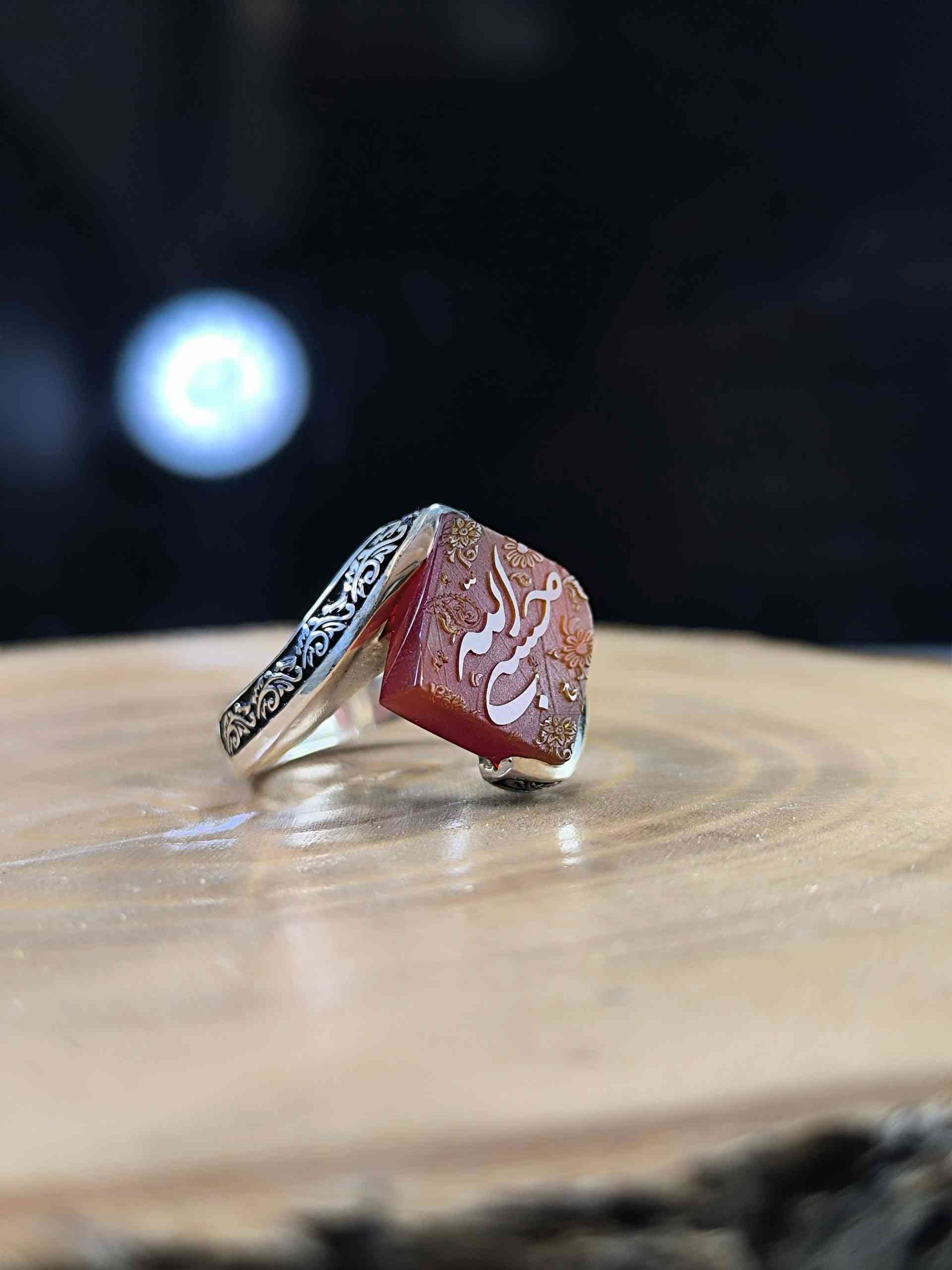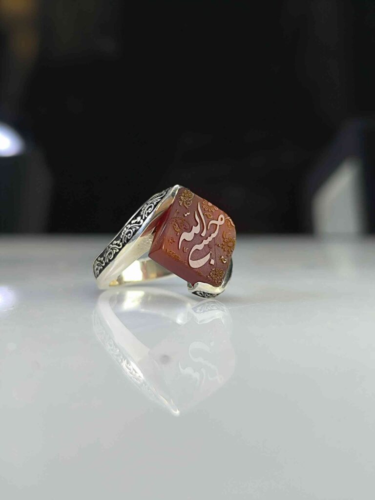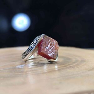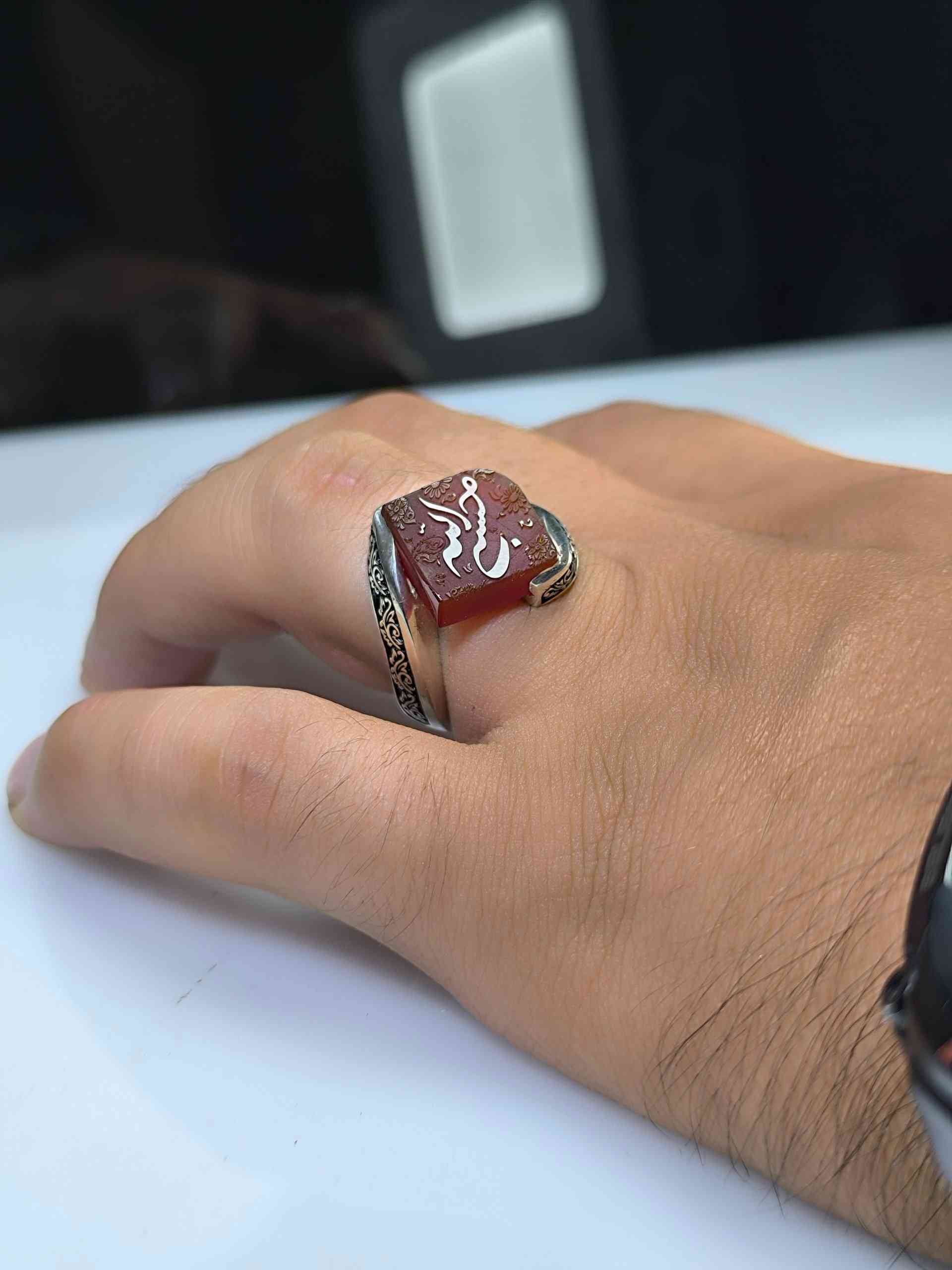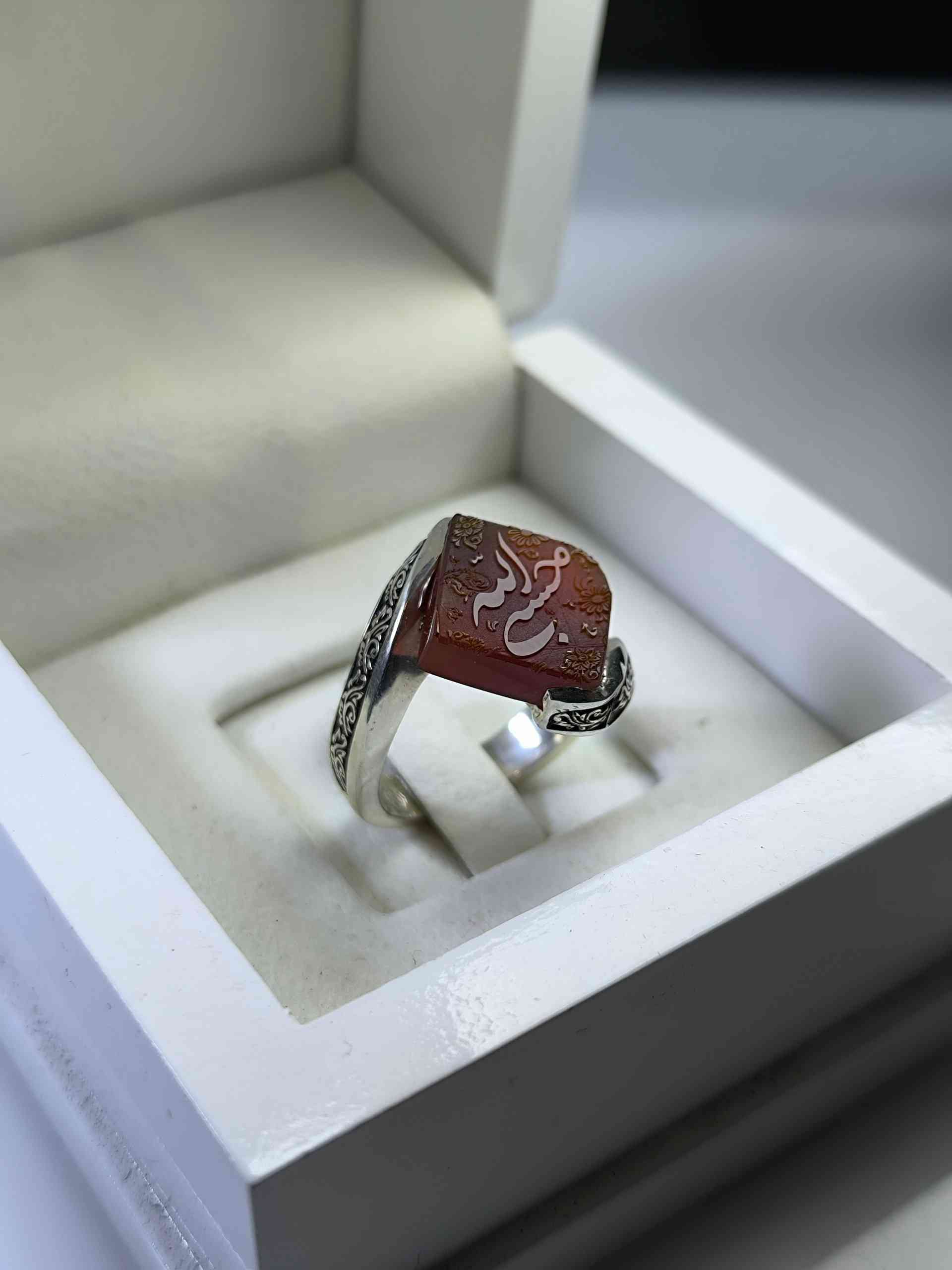 خانه انگشتر مردانه انگشتر عقیق انگشتر نقطه عقیق قرمز نقش برجسته حسبی الله