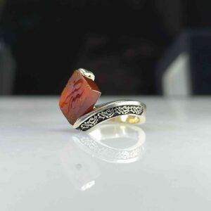 انگشتر عقیق دو رنگ طرح پیچ نقش یاعلی ع