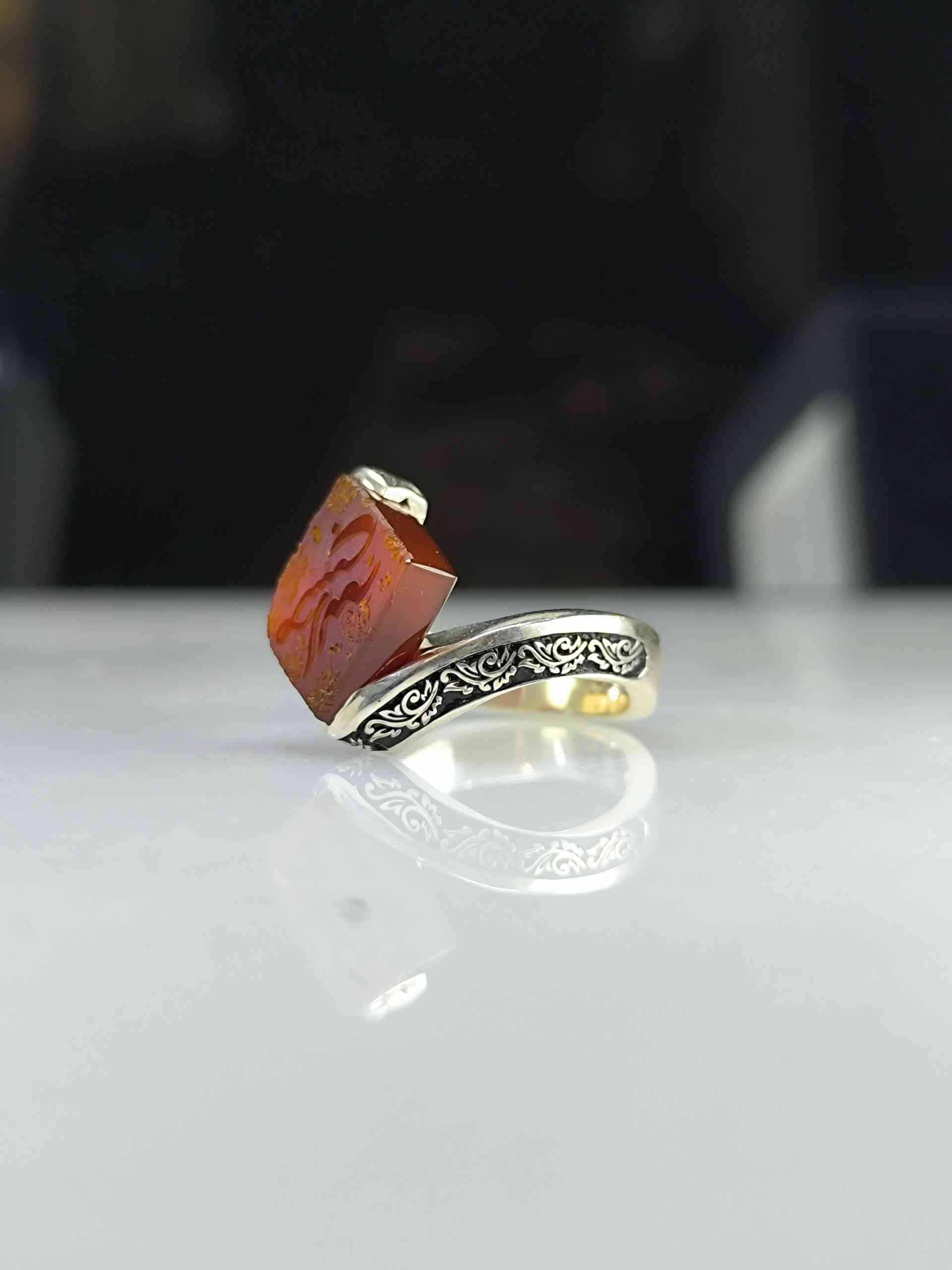 انگشتر نقطه عقیق قرمز نقش برجسته حسبی الله - Image 6