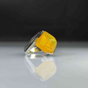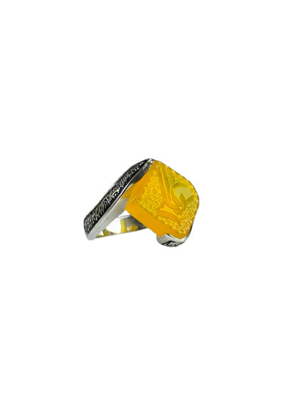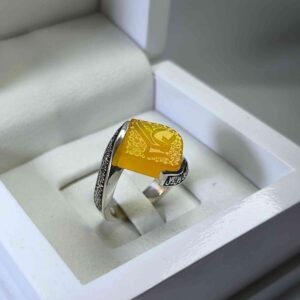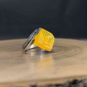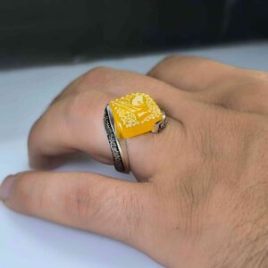 انگشتر نقطه طرح پیچ عقیق زرد شرف شمس نقش یاعلی ع