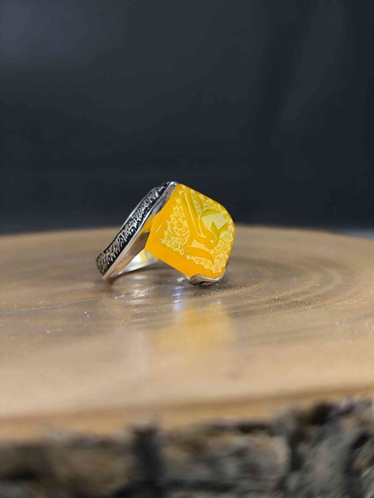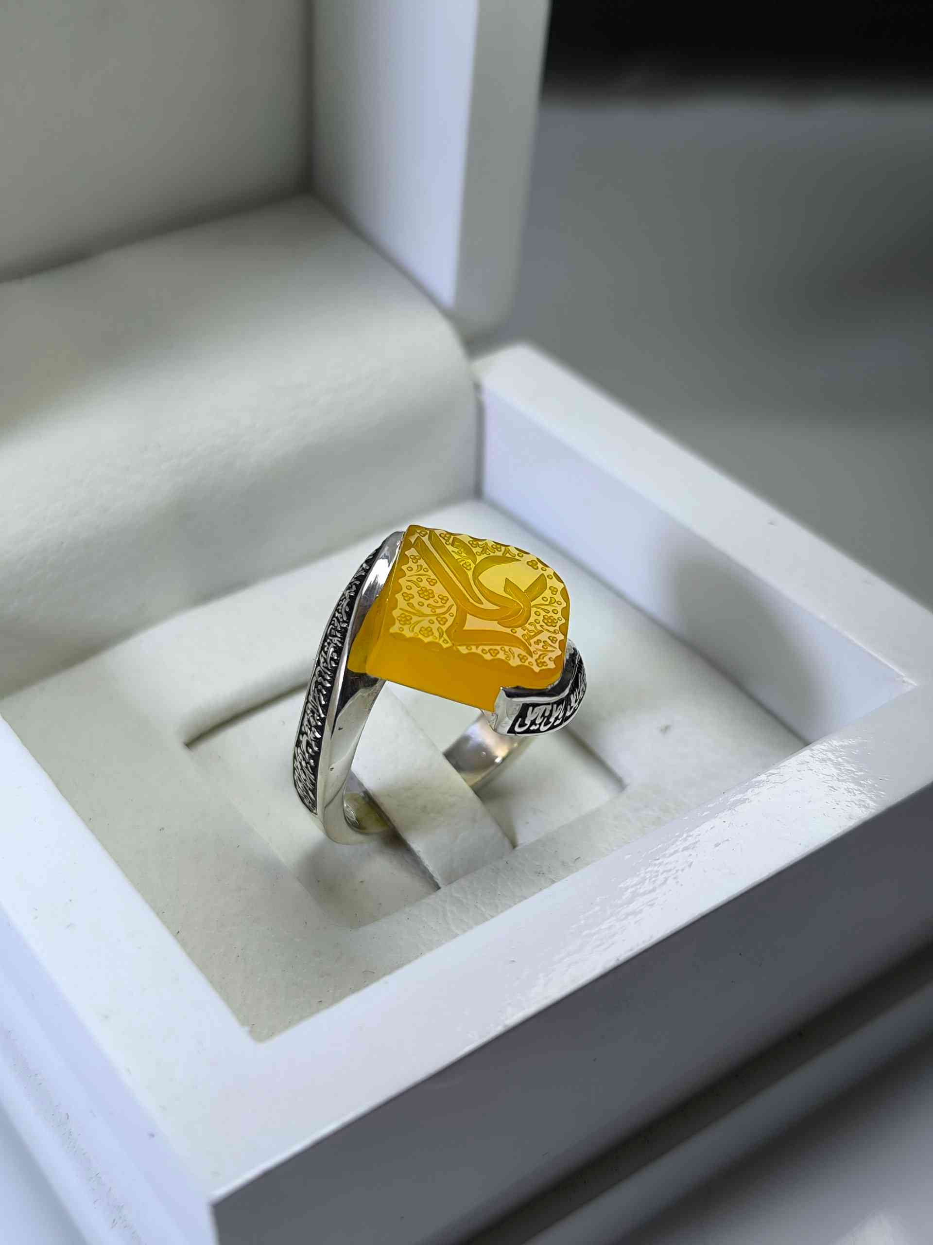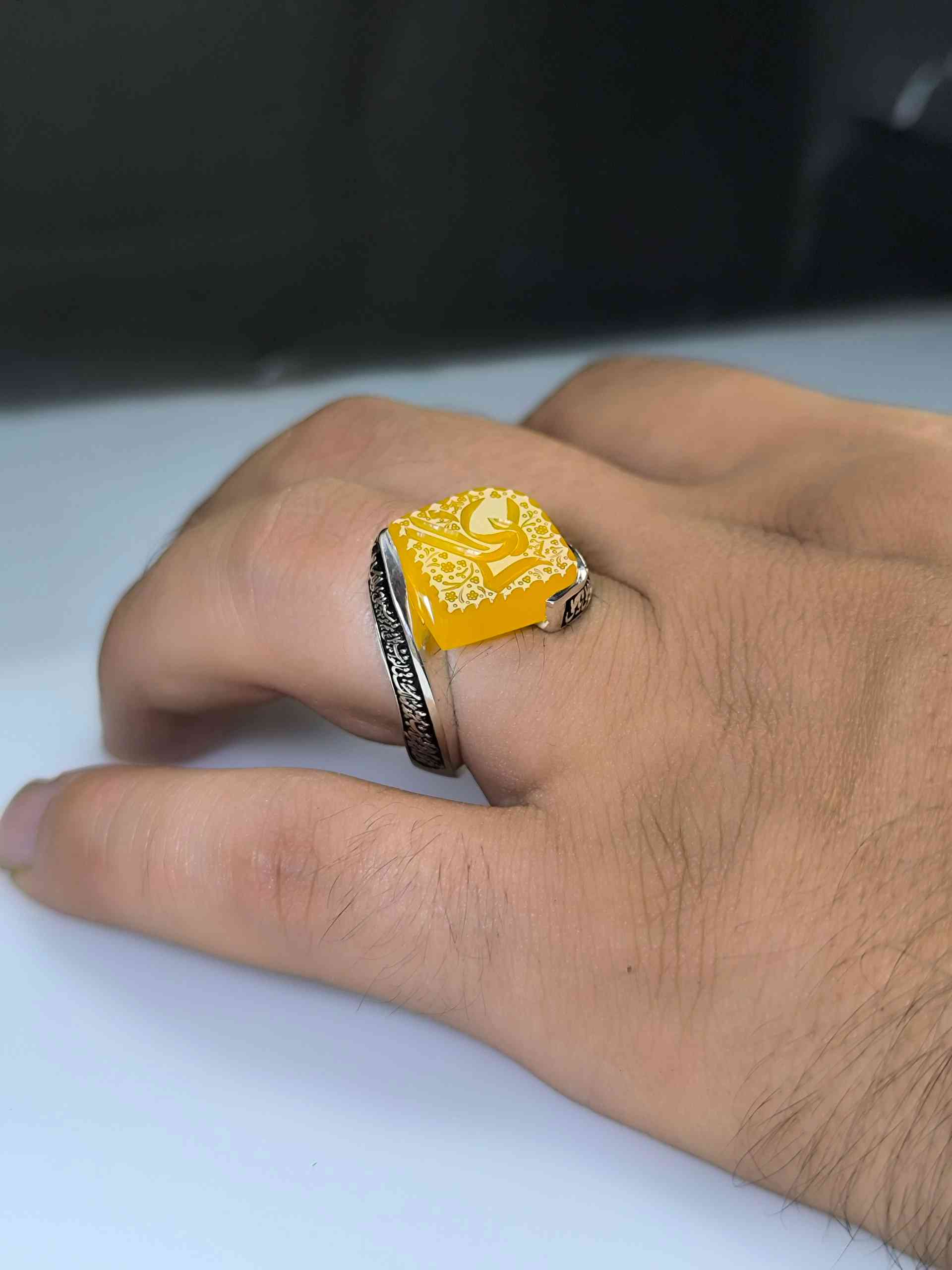 انگشتر نقطه طرح پیچ عقیق زرد شرف شمس نقش یاعلی ع - Image 6