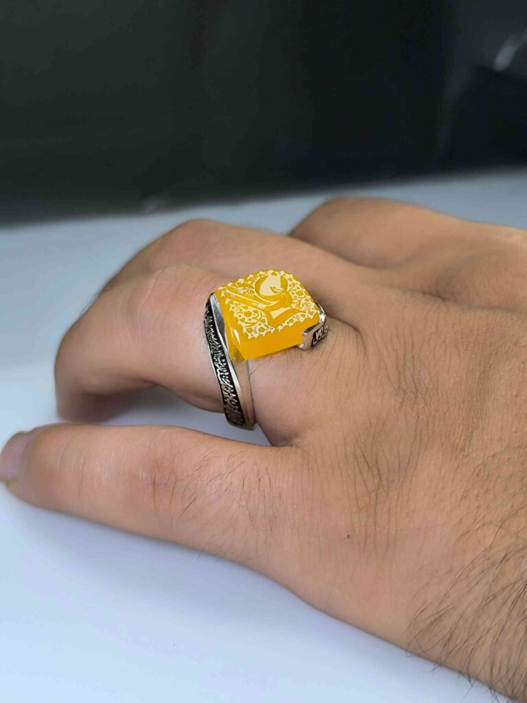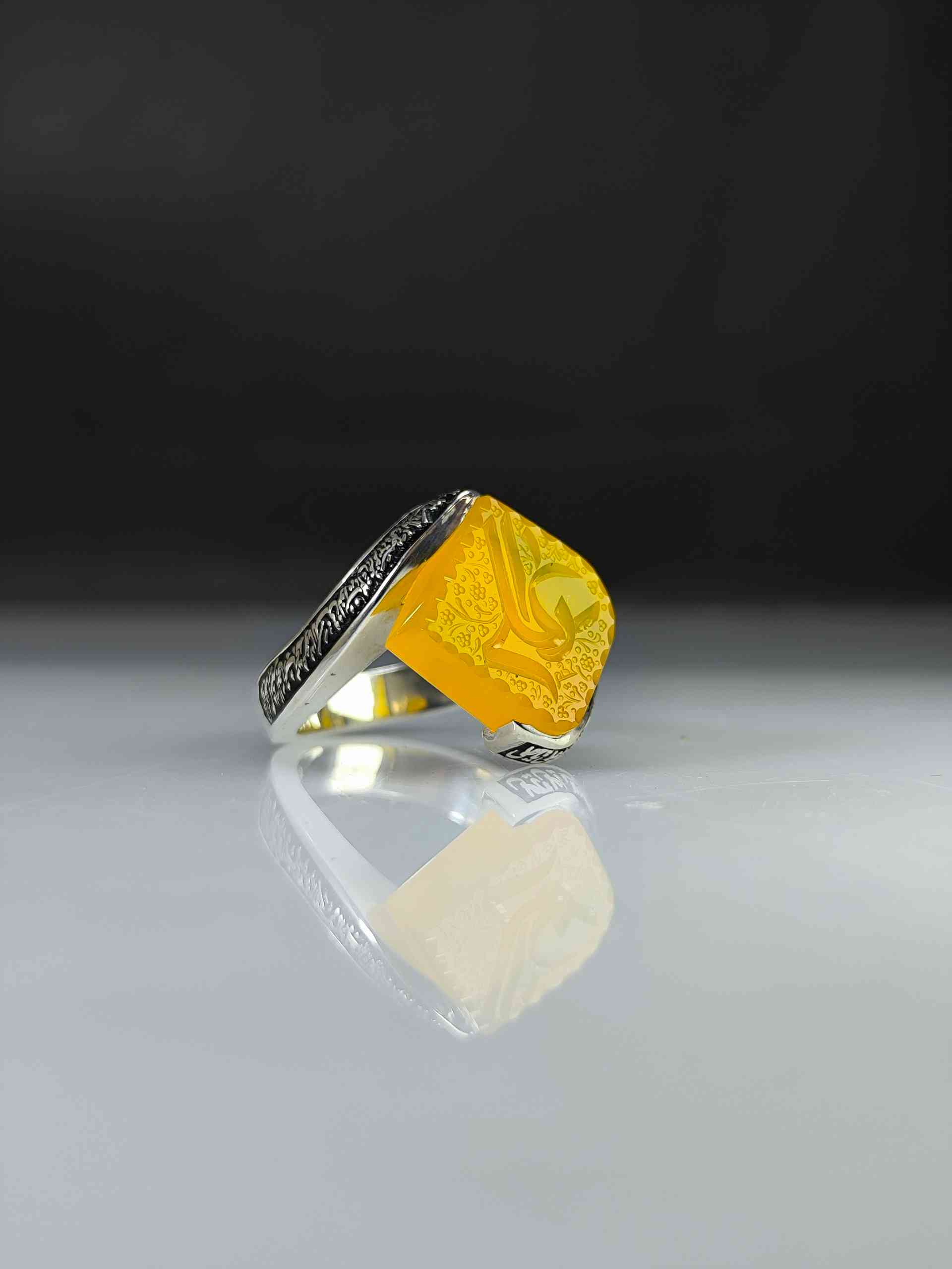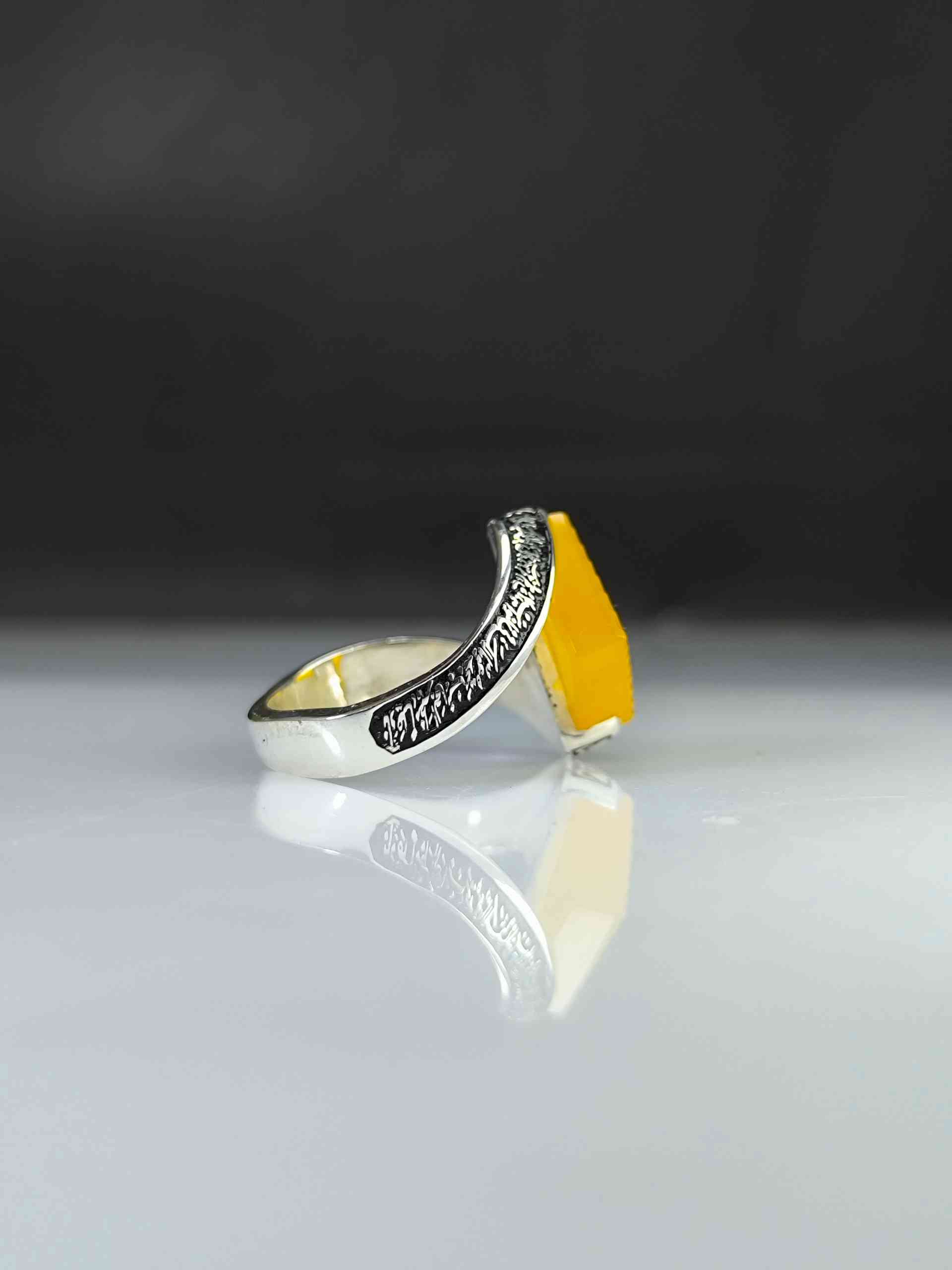 انگشتر نقطه طرح پیچ عقیق زرد شرف شمس نقش یاعلی ع - Image 6